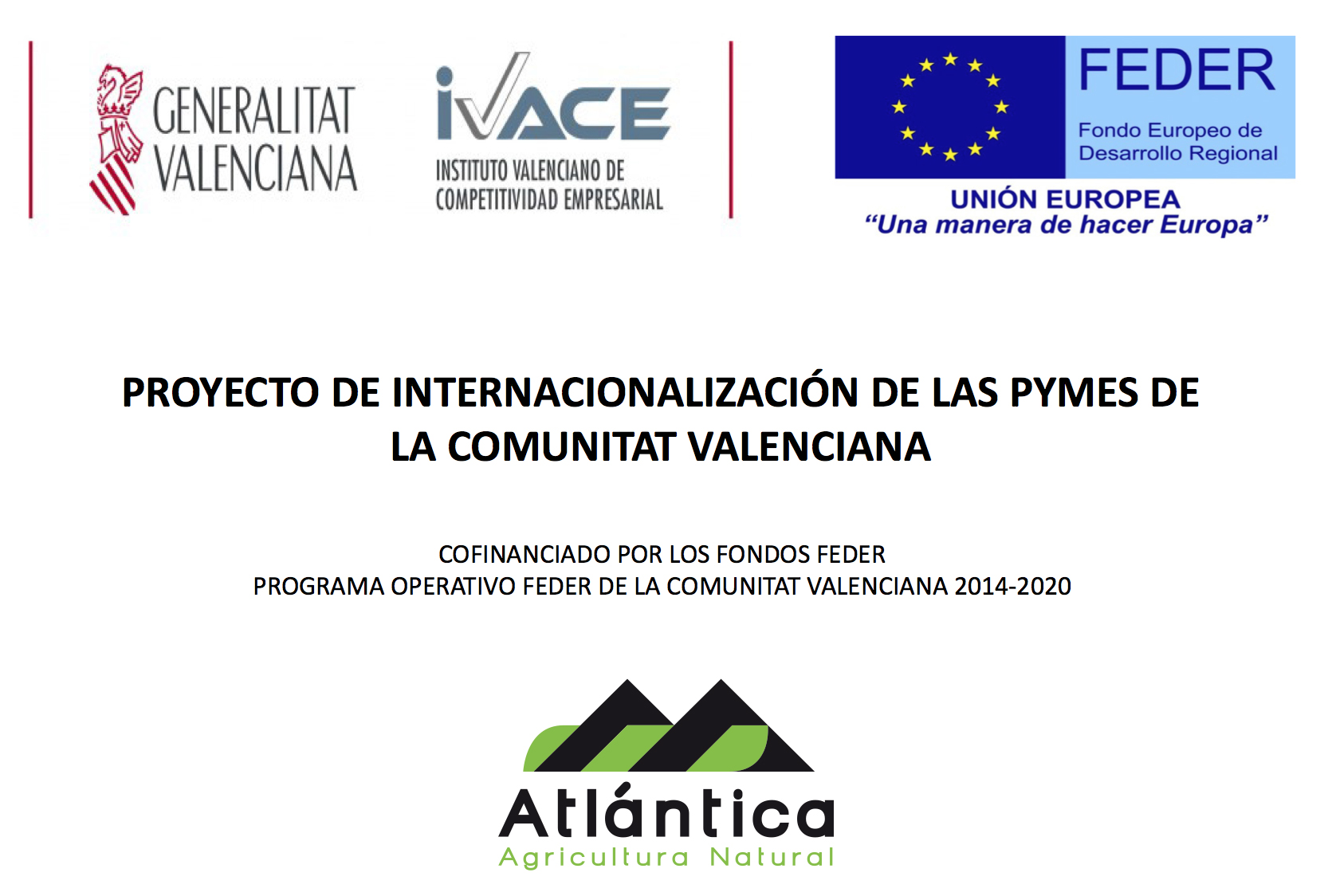 En  este contexto, el proyecto de internacionalización de Atlántica Agrícola ha sido seleccionado en el marco del Programa Operativo FEDER de la Comunitat Valenciana 2014-2020. La subvención concedida para este proyecto en la anualidad 2016, ha sido de 39.000€.