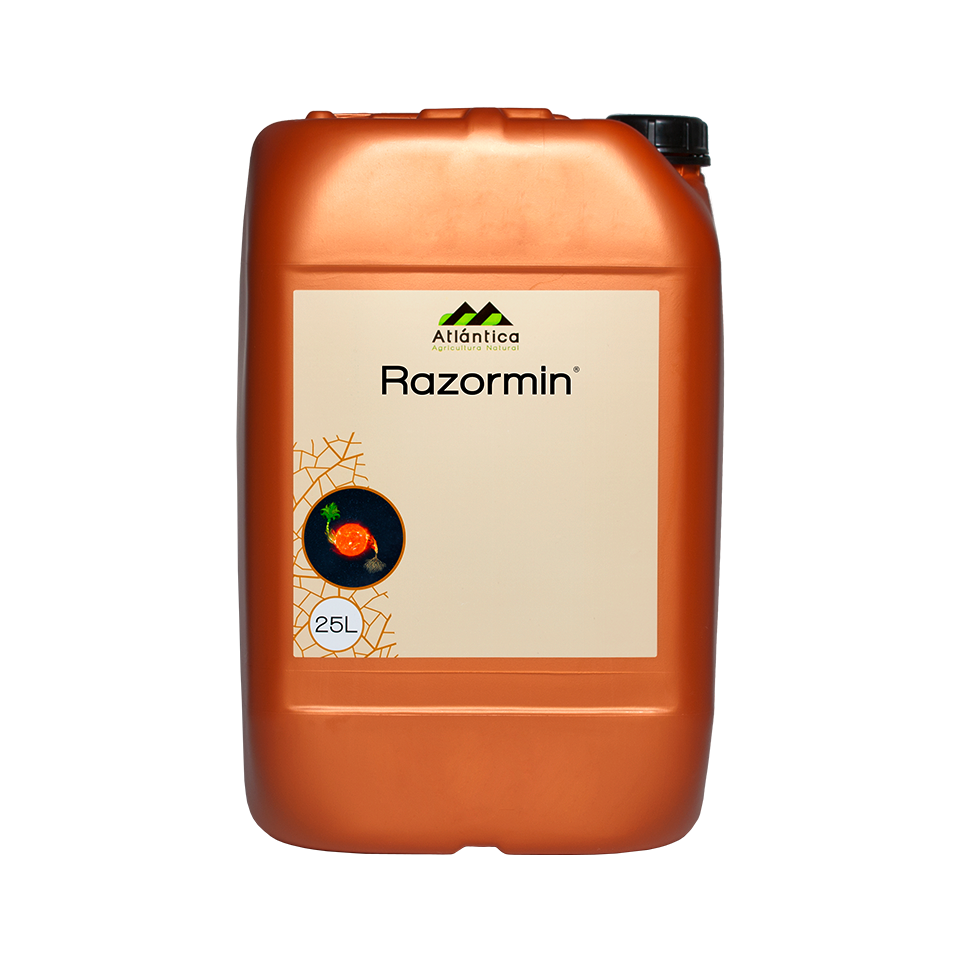Razormin es un bioestimulante dual (raíz y hoja) indicado para activar de forma balanceada el metabolismo interno del cultivo en fases de intenso desarrollo vegetativo y crecimiento de fruto, especialmente bajo condiciones de alto estrés abiótico (tratamientos foliares). Así mismo promueve de forma intensa nueva raíz absorbente si es aplicado a través del sistema de riego.
